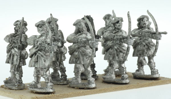 8 x Highlander Bowman putting arrow into bow, (wearing belted plaid)Figure(s) supplied unpainted